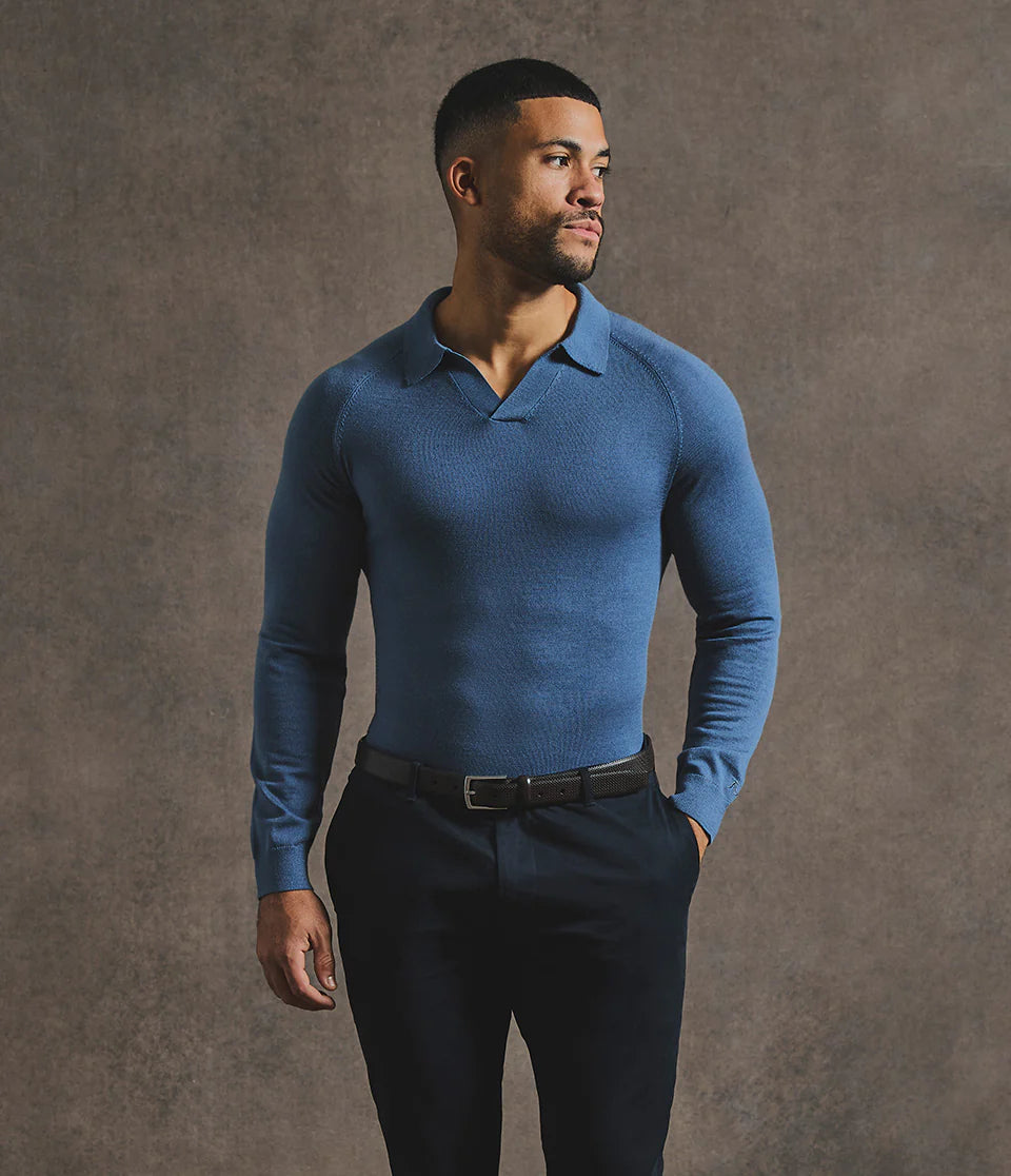 Open Collar Knitted Polo Shirt in Brown Marl